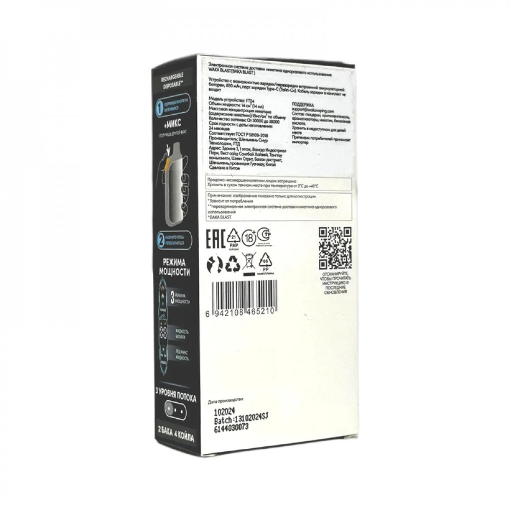 На складе Код товара: WAKA BLAST 38000 Hard - Клубника + ваниль микс WAKA BLAST 38000 Hard - Клубника + ваниль микс